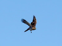 There were many Crows and Ravens in the distance, kicking up a ruckus as they harassed another bird. The Cooper's Hawk, who had been perched, took off as if to follow, then suddenly spun away abruptly screaming in agitation.